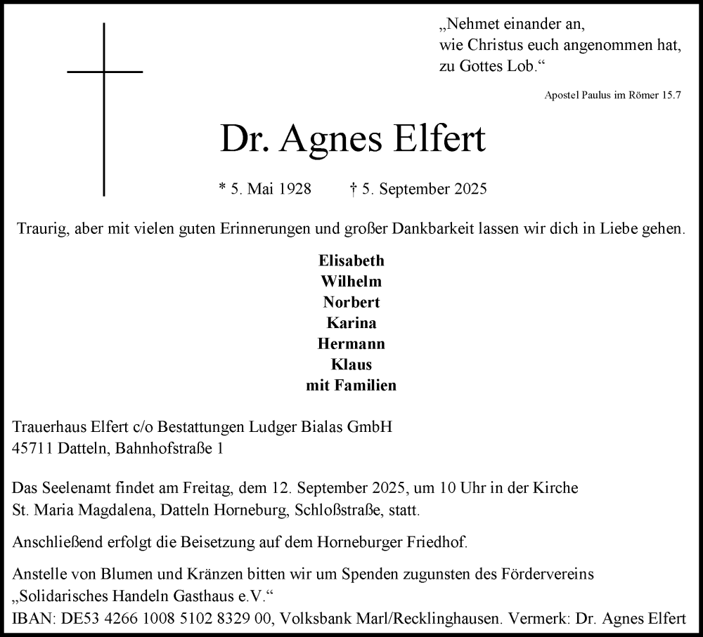 Hier finden Sie alle Traueranzeigen aus der Zeitung, die bisher für Agnes Elfert erschienen sind. Weitere Traueranzeigen, die in der Zeitung erscheinen, werden hier ebenfalls aufgelistet