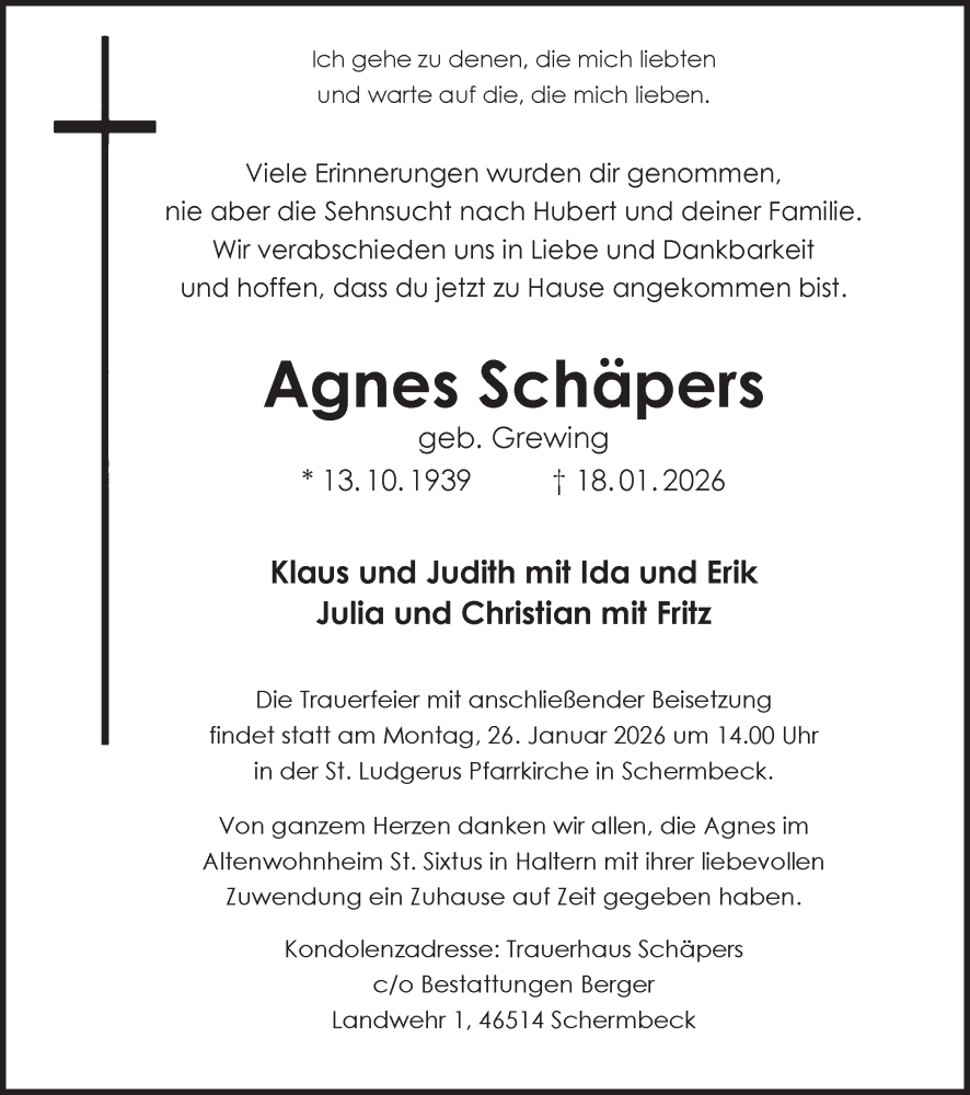 Hier finden Sie alle Traueranzeigen aus der Zeitung, die bisher für Agnes Schäpers erschienen sind. Weitere Traueranzeigen, die in der Zeitung erscheinen, werden hier ebenfalls aufgelistet