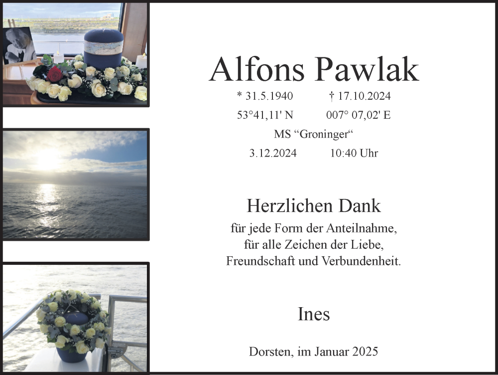 Hier finden Sie alle Traueranzeigen aus der Zeitung, die bisher für Alfons Pawlak erschienen sind. Weitere Traueranzeigen, die in der Zeitung erscheinen, werden hier ebenfalls aufgelistet