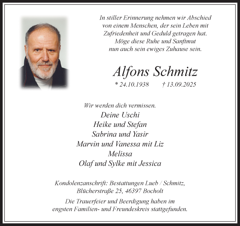 Hier finden Sie alle Traueranzeigen aus der Zeitung, die bisher für Alfons Schmitz erschienen sind. Weitere Traueranzeigen, die in der Zeitung erscheinen, werden hier ebenfalls aufgelistet