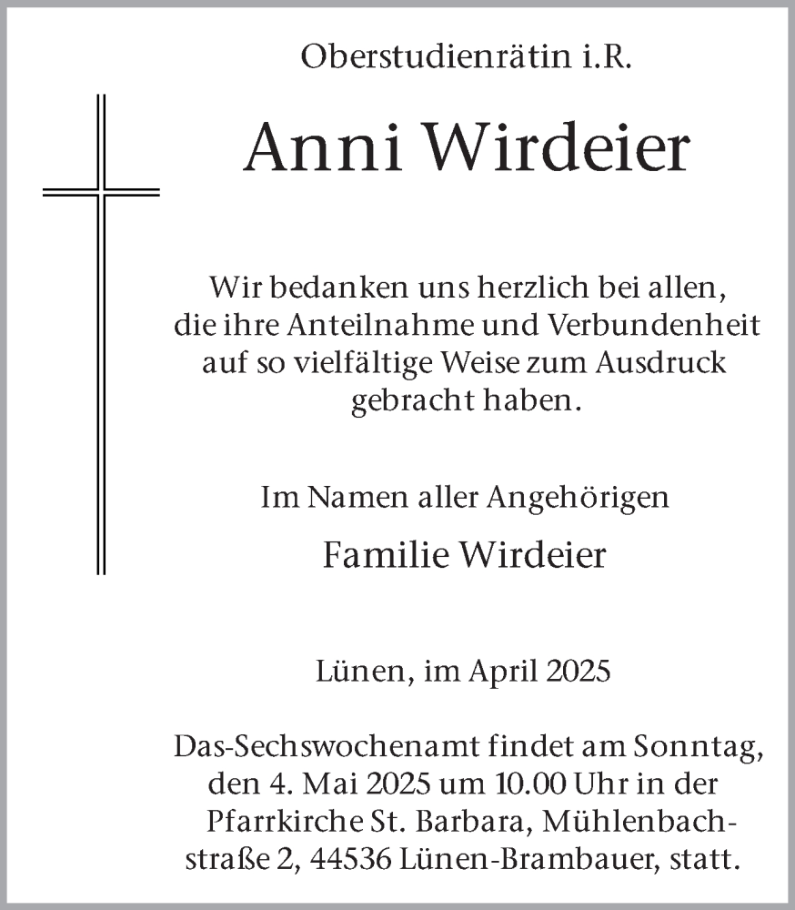 Hier finden Sie alle Traueranzeigen aus der Zeitung, die bisher für Anni Wirdeier erschienen sind. Weitere Traueranzeigen, die in der Zeitung erscheinen, werden hier ebenfalls aufgelistet