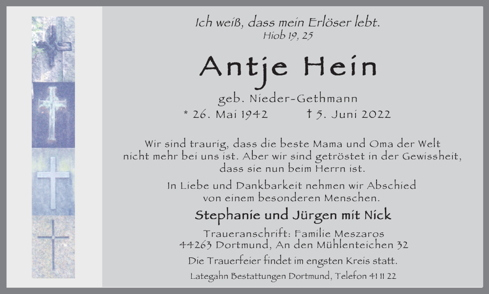 Hier finden Sie alle Traueranzeigen aus der Zeitung, die bisher für Antje Hein erschienen sind. Weitere Traueranzeigen, die in der Zeitung erscheinen, werden hier ebenfalls aufgelistet