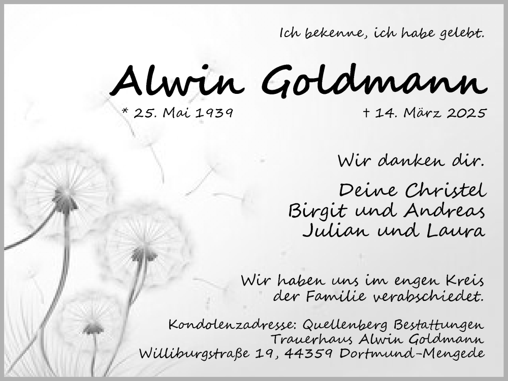 Hier finden Sie alle Traueranzeigen aus der Zeitung, die bisher für Arwin Goldmann erschienen sind. Weitere Traueranzeigen, die in der Zeitung erscheinen, werden hier ebenfalls aufgelistet