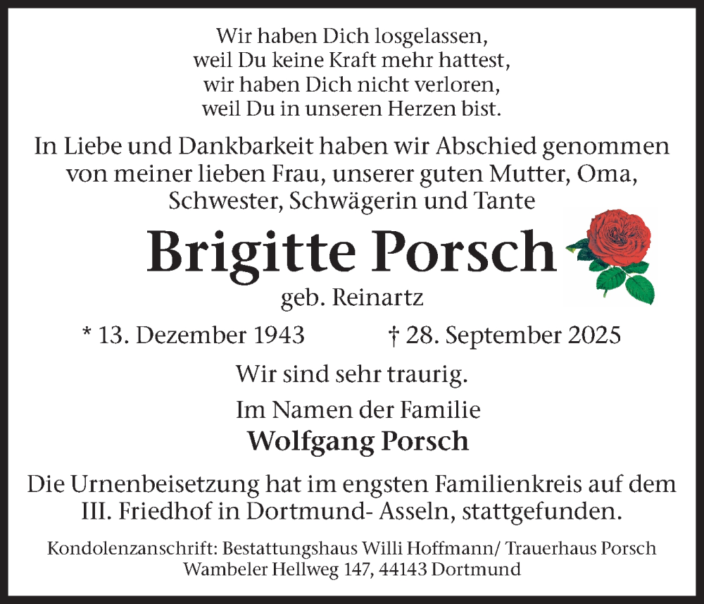 Hier finden Sie alle Traueranzeigen aus der Zeitung, die bisher für Brigitte Porsch erschienen sind. Weitere Traueranzeigen, die in der Zeitung erscheinen, werden hier ebenfalls aufgelistet