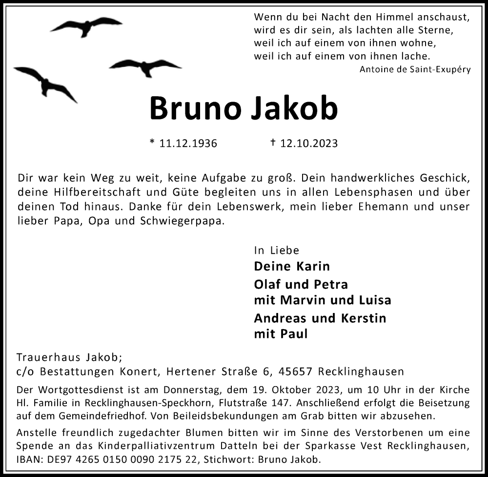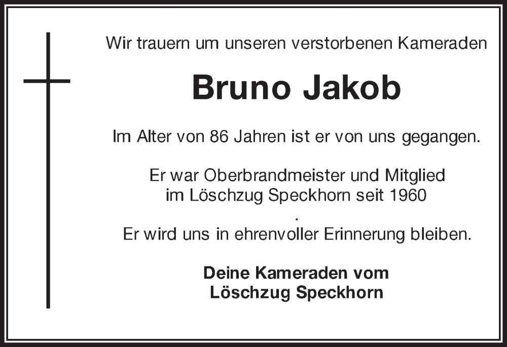 Hier finden Sie alle Traueranzeigen aus der Zeitung, die bisher für Bruno Jakob erschienen sind. Weitere Traueranzeigen, die in der Zeitung erscheinen, werden hier ebenfalls aufgelistet