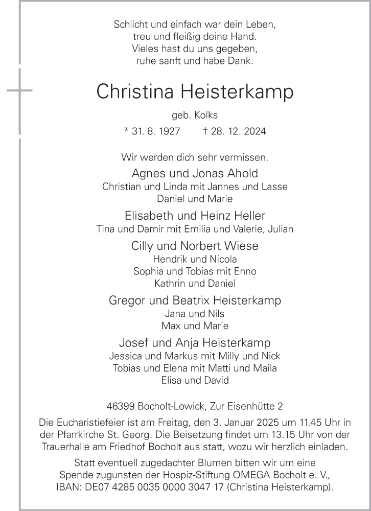 Hier finden Sie alle Traueranzeigen aus der Zeitung, die bisher für Christina Heisterkamp erschienen sind. Weitere Traueranzeigen, die in der Zeitung erscheinen, werden hier ebenfalls aufgelistet