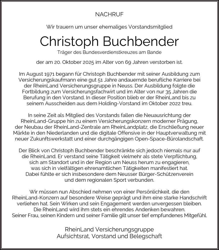 Hier finden Sie alle Traueranzeigen aus der Zeitung, die bisher für Christoph Buchbender erschienen sind. Weitere Traueranzeigen, die in der Zeitung erscheinen, werden hier ebenfalls aufgelistet