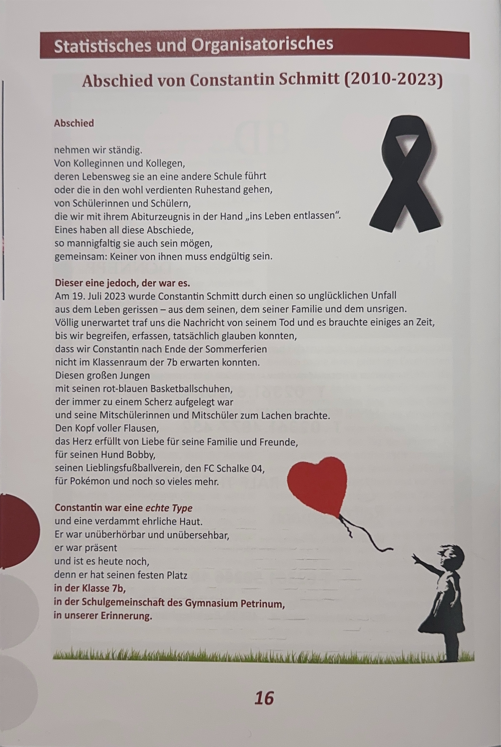 Eine sehr schöne, persönliche und treffende Erinnerung! (Abdruck mit freundlicher Genehmigung: Petrinum - Das Schulmagazin 56/2024)