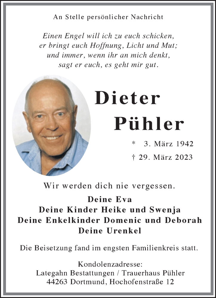 Hier finden Sie alle Traueranzeigen aus der Zeitung, die bisher für Dieter Pühler erschienen sind. Weitere Traueranzeigen, die in der Zeitung erscheinen, werden hier ebenfalls aufgelistet