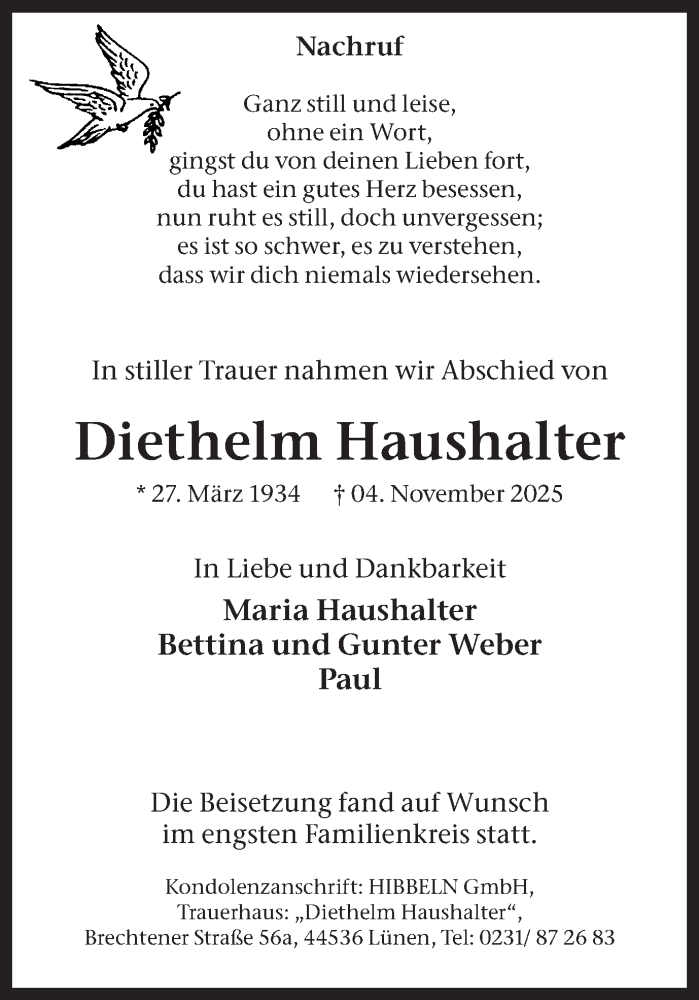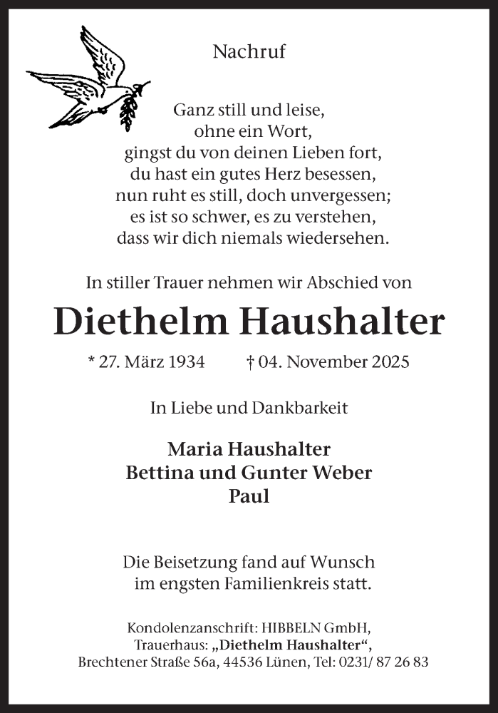 Hier finden Sie alle Traueranzeigen aus der Zeitung, die bisher für Diethelm Haushalter erschienen sind. Weitere Traueranzeigen, die in der Zeitung erscheinen, werden hier ebenfalls aufgelistet