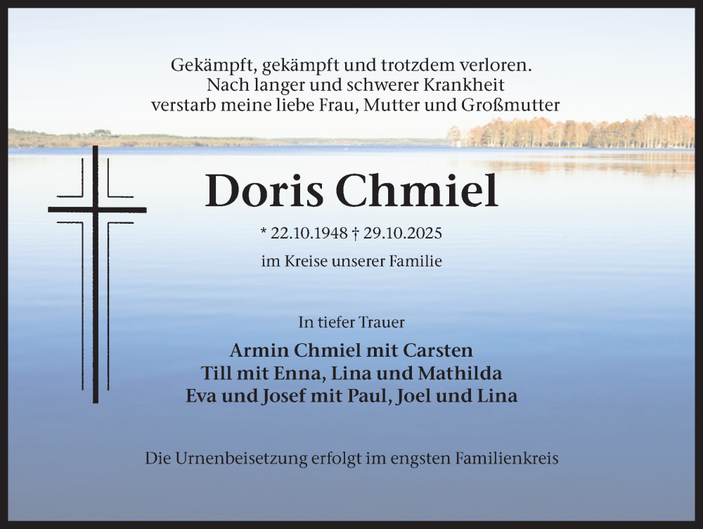 Hier finden Sie alle Traueranzeigen aus der Zeitung, die bisher für Doris Chmiel erschienen sind. Weitere Traueranzeigen, die in der Zeitung erscheinen, werden hier ebenfalls aufgelistet