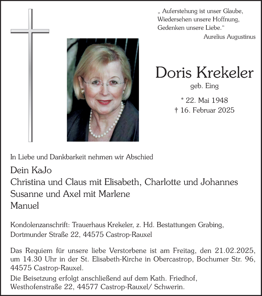 Hier finden Sie alle Traueranzeigen aus der Zeitung, die bisher für Doris Krekeler erschienen sind. Weitere Traueranzeigen, die in der Zeitung erscheinen, werden hier ebenfalls aufgelistet