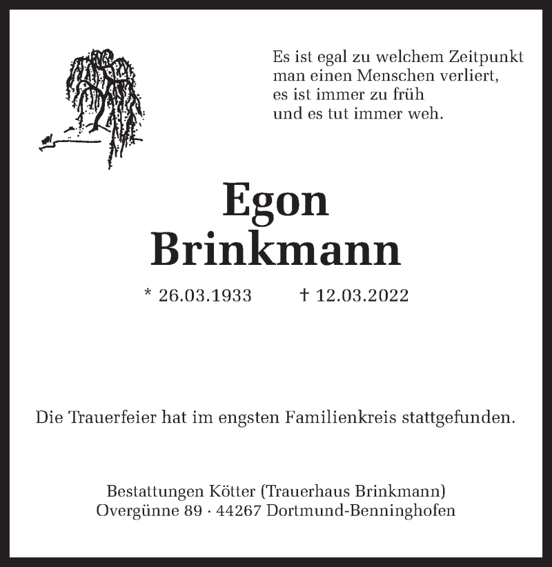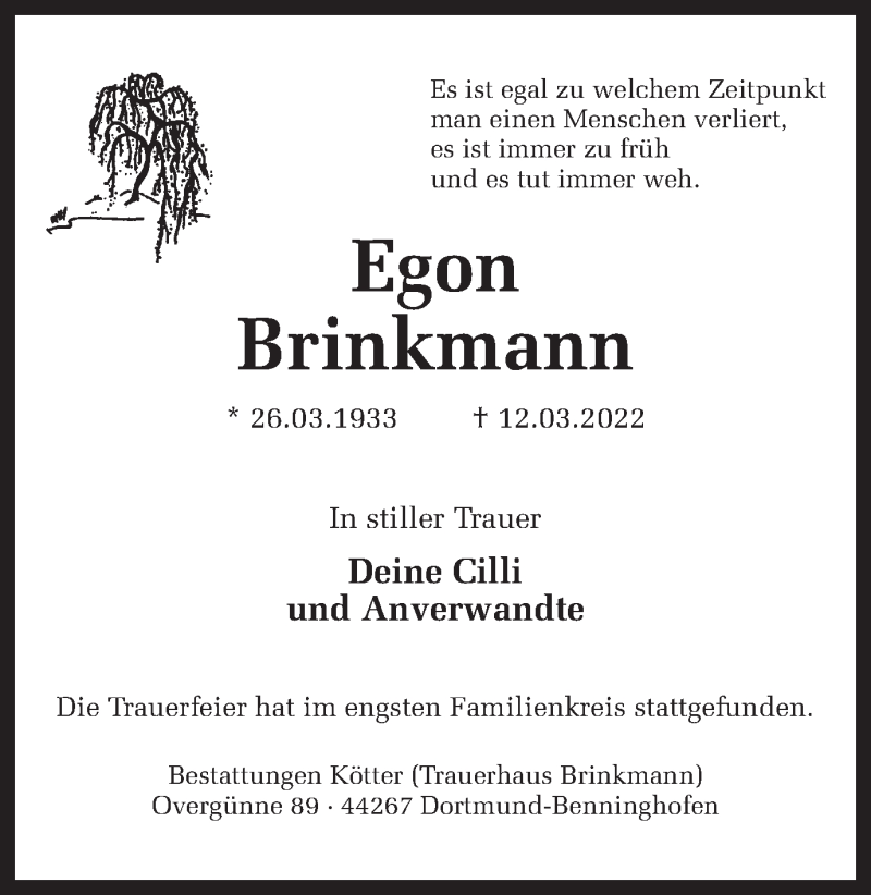 Hier finden Sie alle Traueranzeigen aus der Zeitung, die bisher für Egon Brinkmann erschienen sind. Weitere Traueranzeigen, die in der Zeitung erscheinen, werden hier ebenfalls aufgelistet