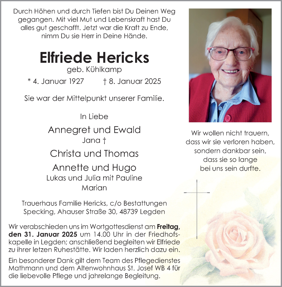 Hier finden Sie alle Traueranzeigen aus der Zeitung, die bisher für Elfriede Hericks erschienen sind. Weitere Traueranzeigen, die in der Zeitung erscheinen, werden hier ebenfalls aufgelistet