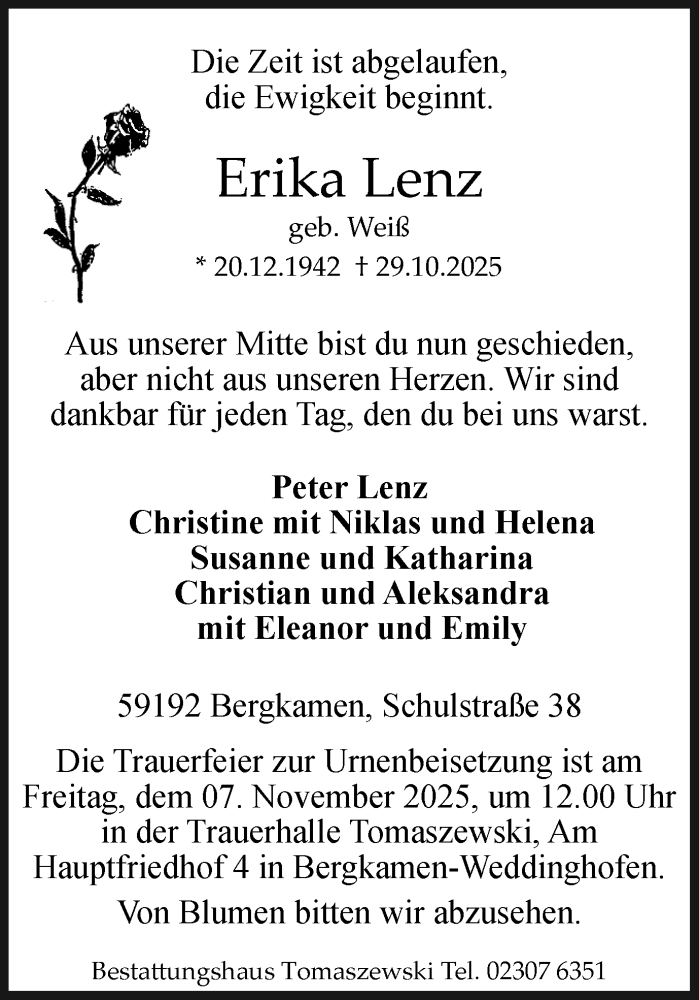 Hier finden Sie alle Traueranzeigen aus der Zeitung, die bisher für Erika Lenz erschienen sind. Weitere Traueranzeigen, die in der Zeitung erscheinen, werden hier ebenfalls aufgelistet
