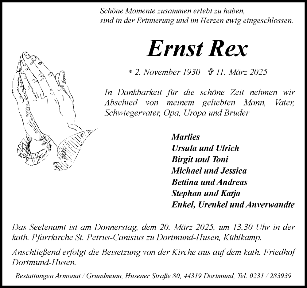 Hier finden Sie alle Traueranzeigen aus der Zeitung, die bisher für Ernst Rex erschienen sind. Weitere Traueranzeigen, die in der Zeitung erscheinen, werden hier ebenfalls aufgelistet