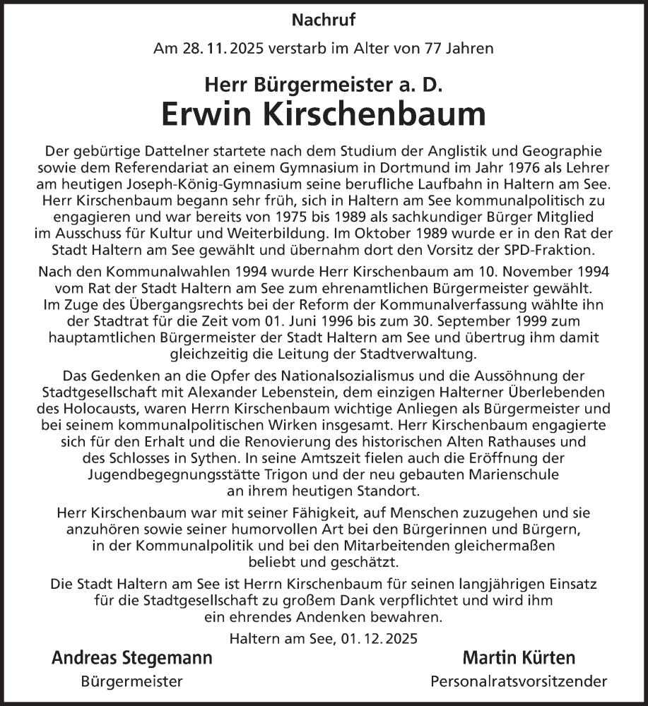Hier finden Sie alle Traueranzeigen aus der Zeitung, die bisher für Erwin Kirschenbaum erschienen sind. Weitere Traueranzeigen, die in der Zeitung erscheinen, werden hier ebenfalls aufgelistet