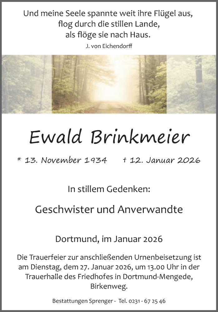 Hier finden Sie alle Traueranzeigen aus der Zeitung, die bisher für Ewald Brinkmeier erschienen sind. Weitere Traueranzeigen, die in der Zeitung erscheinen, werden hier ebenfalls aufgelistet