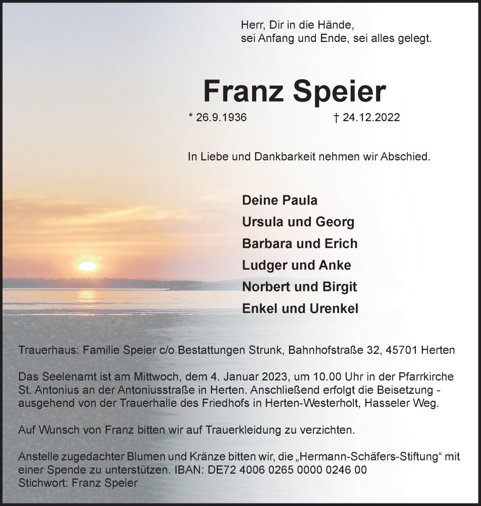 Hier finden Sie alle Traueranzeigen aus der Zeitung, die bisher für Franz Speier erschienen sind. Weitere Traueranzeigen, die in der Zeitung erscheinen, werden hier ebenfalls aufgelistet