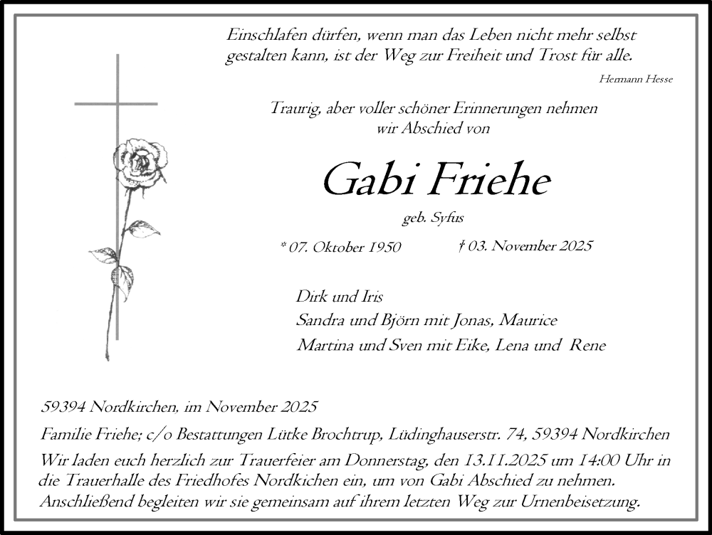 Hier finden Sie alle Traueranzeigen aus der Zeitung, die bisher für Gabi Friehe erschienen sind. Weitere Traueranzeigen, die in der Zeitung erscheinen, werden hier ebenfalls aufgelistet