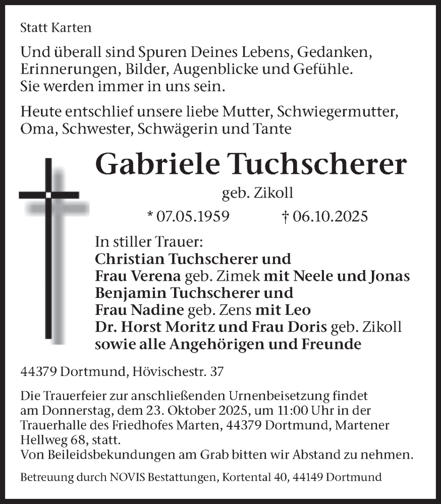 Hier finden Sie alle Traueranzeigen aus der Zeitung, die bisher für Gabriele Tuchscherer erschienen sind. Weitere Traueranzeigen, die in der Zeitung erscheinen, werden hier ebenfalls aufgelistet