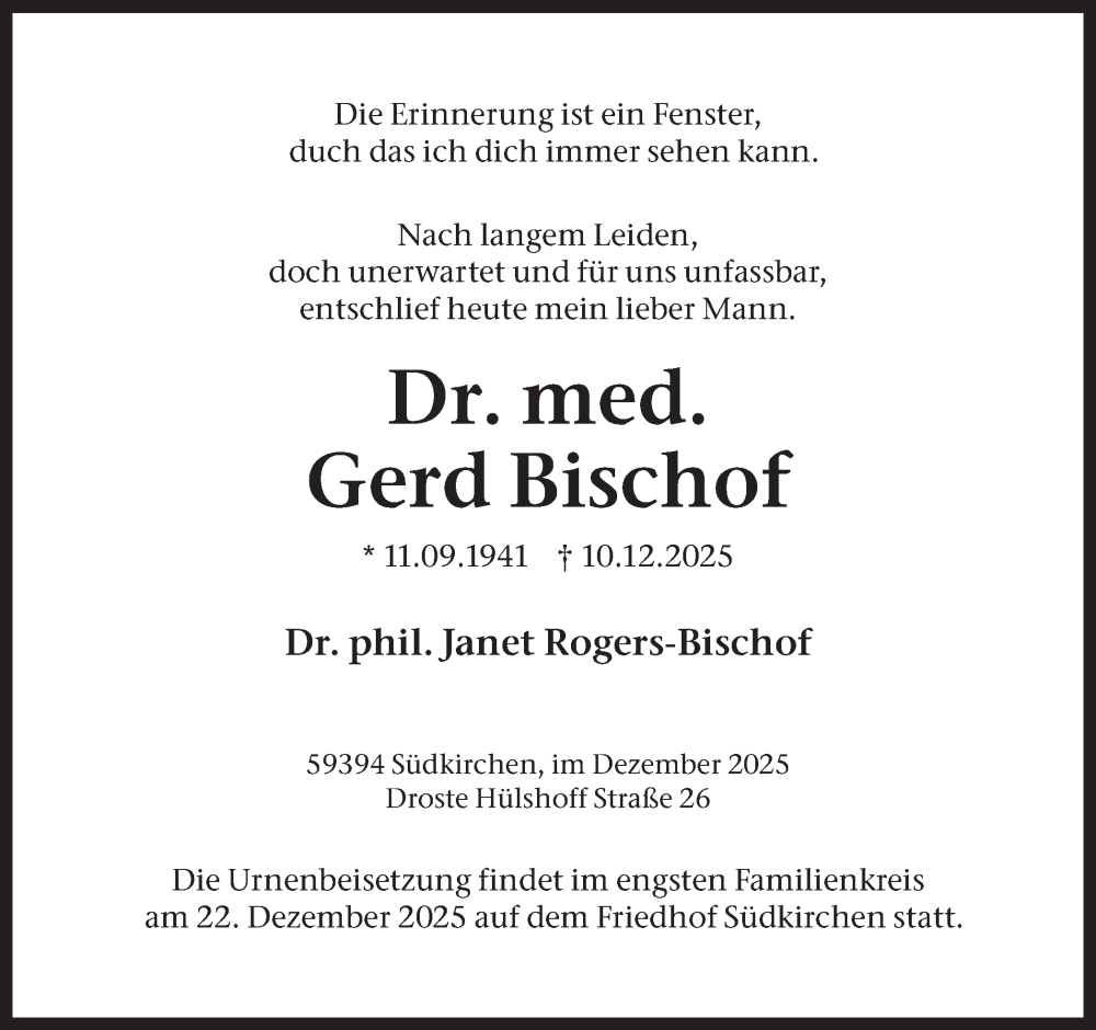 Hier finden Sie alle Traueranzeigen aus der Zeitung, die bisher für Gerd Bischof erschienen sind. Weitere Traueranzeigen, die in der Zeitung erscheinen, werden hier ebenfalls aufgelistet