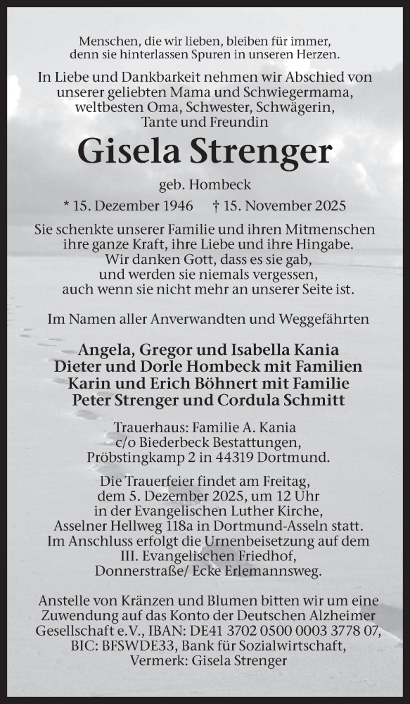 Hier finden Sie alle Traueranzeigen aus der Zeitung, die bisher für Gisela Strenger erschienen sind. Weitere Traueranzeigen, die in der Zeitung erscheinen, werden hier ebenfalls aufgelistet