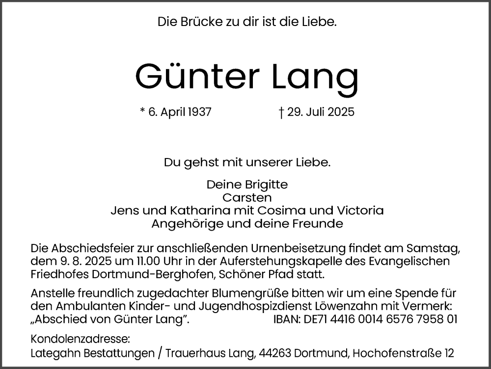 Hier finden Sie alle Traueranzeigen aus der Zeitung, die bisher für Günter Lang erschienen sind. Weitere Traueranzeigen, die in der Zeitung erscheinen, werden hier ebenfalls aufgelistet