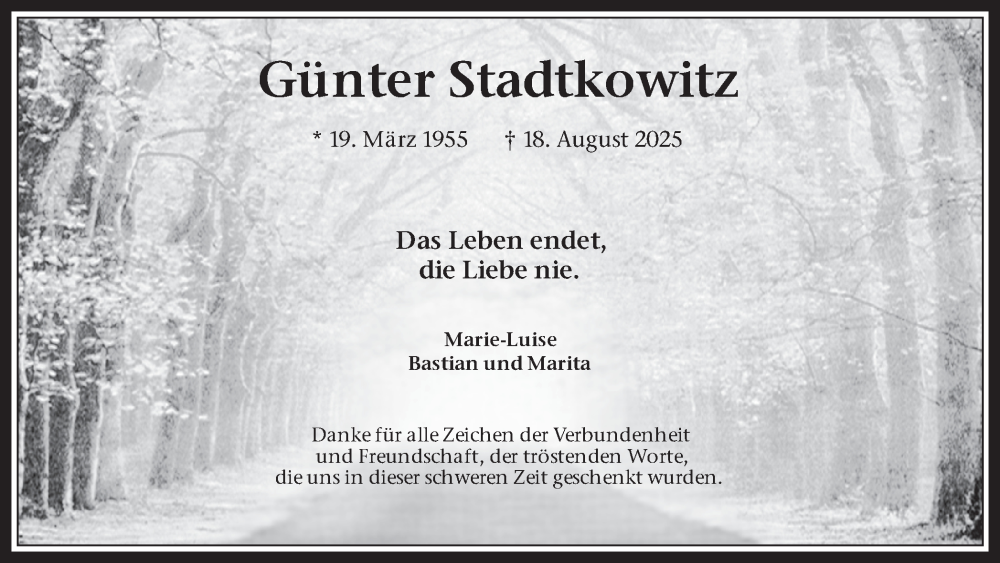 Hier finden Sie alle Traueranzeigen aus der Zeitung, die bisher für Günter Stadtkowitz erschienen sind. Weitere Traueranzeigen, die in der Zeitung erscheinen, werden hier ebenfalls aufgelistet