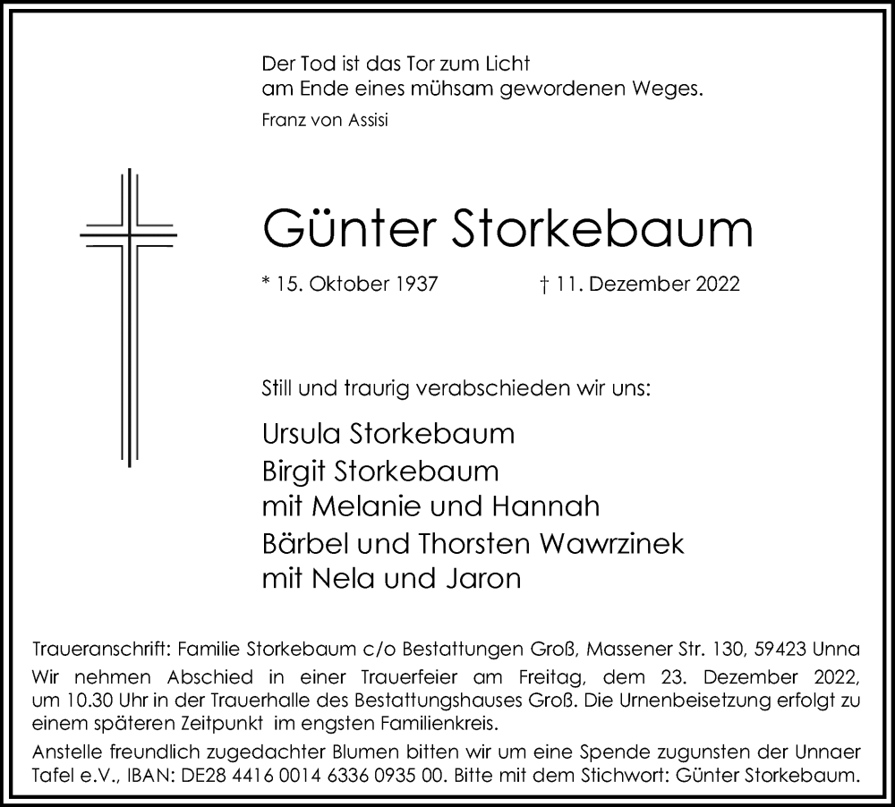Hier finden Sie alle Traueranzeigen aus der Zeitung, die bisher für Günter Storkebaum erschienen sind. Weitere Traueranzeigen, die in der Zeitung erscheinen, werden hier ebenfalls aufgelistet