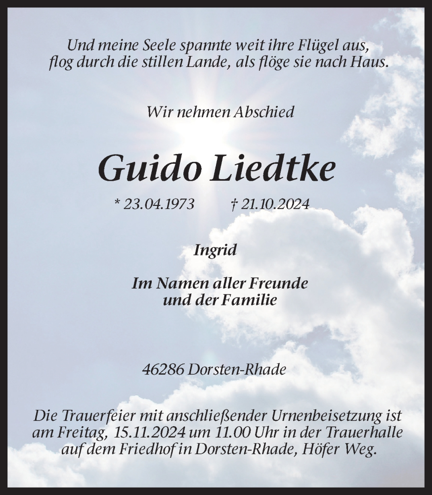 Hier finden Sie alle Traueranzeigen aus der Zeitung, die bisher für Guido Liedtke erschienen sind. Weitere Traueranzeigen, die in der Zeitung erscheinen, werden hier ebenfalls aufgelistet