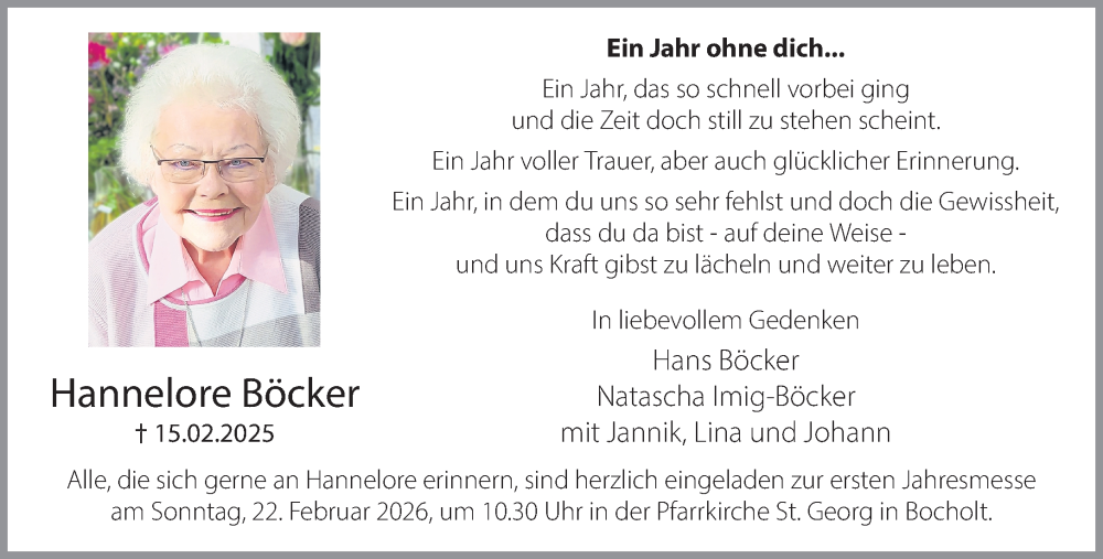 Hier finden Sie alle Traueranzeigen aus der Zeitung, die bisher für Hannelore Böcker erschienen sind. Weitere Traueranzeigen, die in der Zeitung erscheinen, werden hier ebenfalls aufgelistet