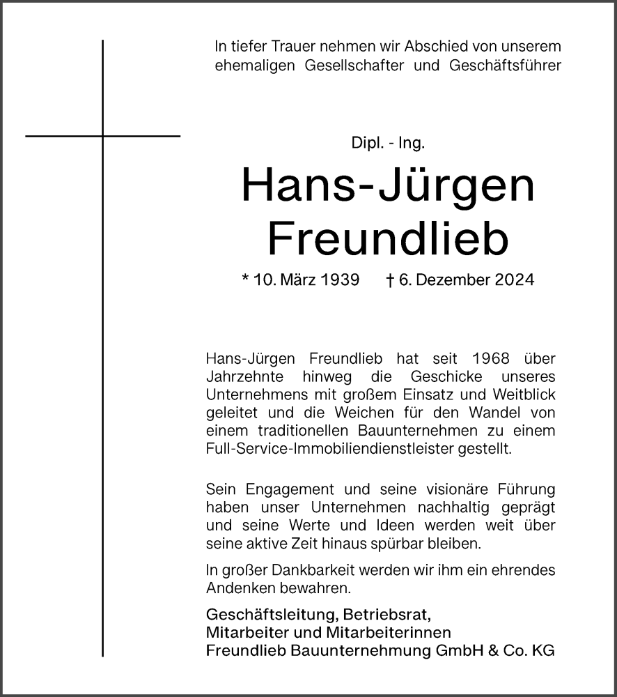 Hier finden Sie alle Traueranzeigen aus der Zeitung, die bisher für Hans-Jürgen Freundlieb erschienen sind. Weitere Traueranzeigen, die in der Zeitung erscheinen, werden hier ebenfalls aufgelistet