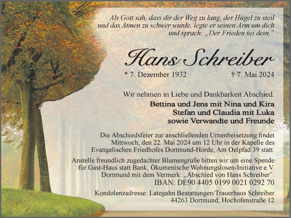 Hier finden Sie alle Traueranzeigen aus der Zeitung, die bisher für Hans Schreiber erschienen sind. Weitere Traueranzeigen, die in der Zeitung erscheinen, werden hier ebenfalls aufgelistet