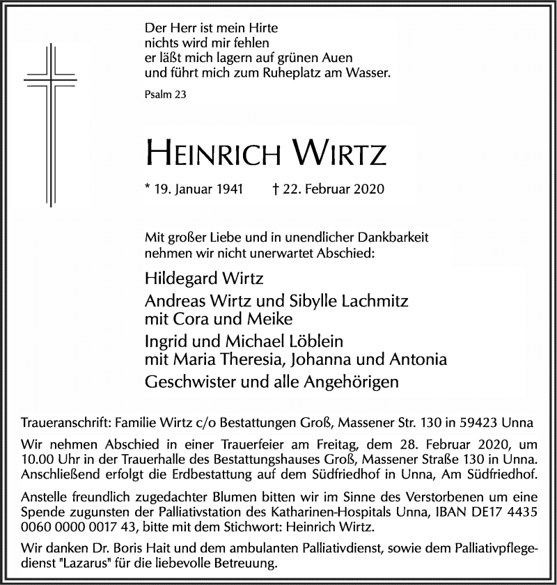 Hier finden Sie alle Traueranzeigen aus der Zeitung, die bisher für Heinrich Wirtz erschienen sind. Weitere Traueranzeigen, die in der Zeitung erscheinen, werden hier ebenfalls aufgelistet