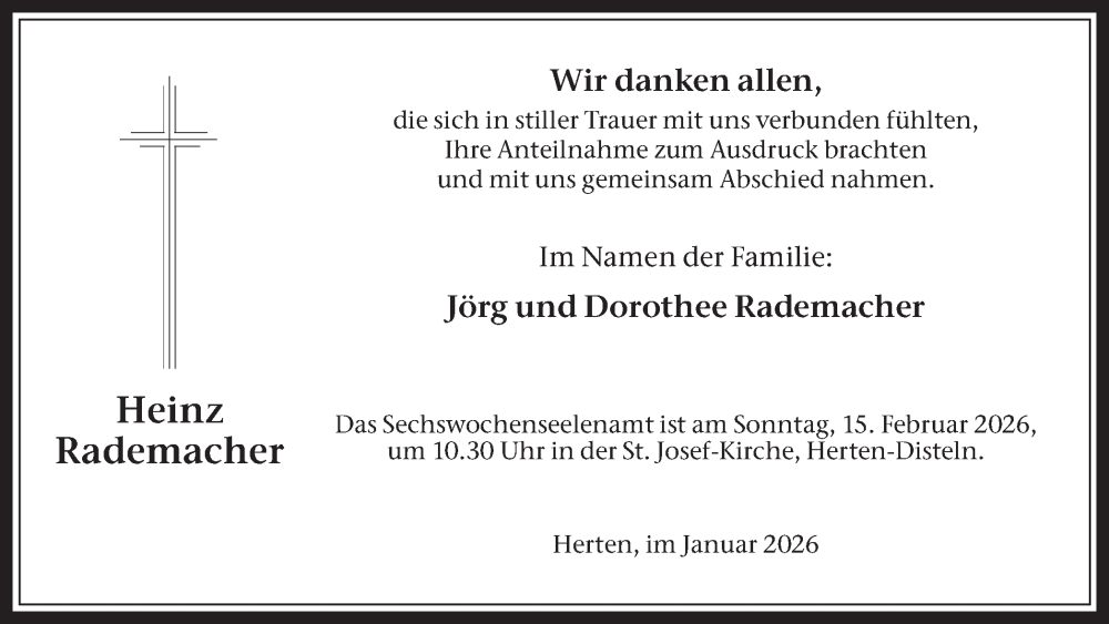 Hier finden Sie alle Traueranzeigen aus der Zeitung, die bisher für Heinz Rademacher erschienen sind. Weitere Traueranzeigen, die in der Zeitung erscheinen, werden hier ebenfalls aufgelistet