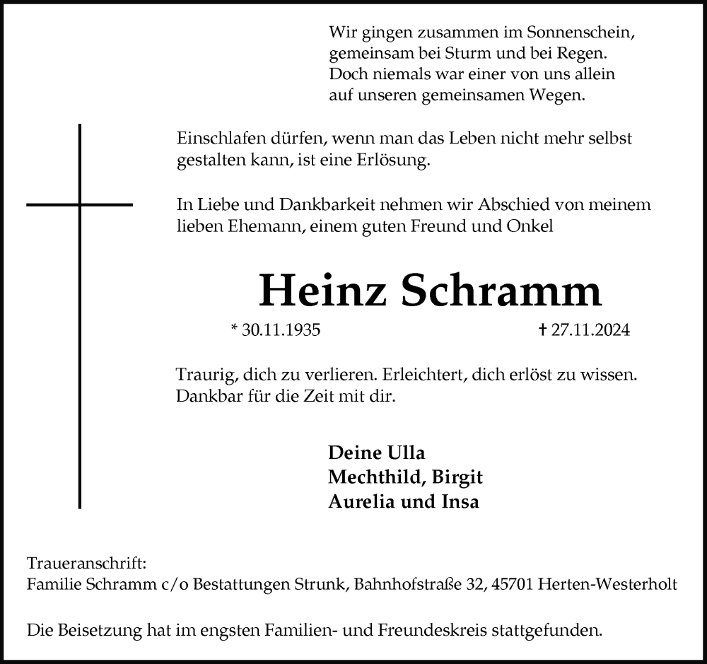 Hier finden Sie alle Traueranzeigen aus der Zeitung, die bisher für Heinz Schramm erschienen sind. Weitere Traueranzeigen, die in der Zeitung erscheinen, werden hier ebenfalls aufgelistet