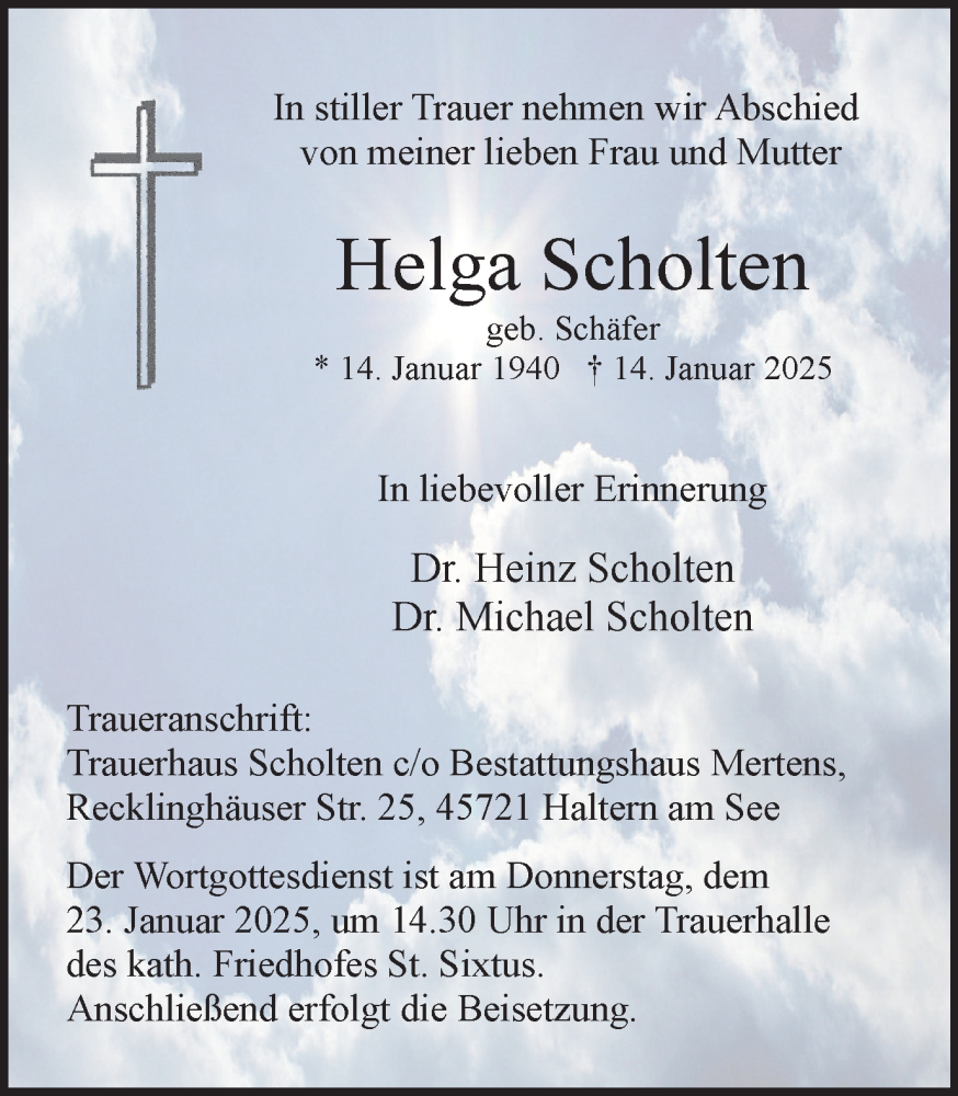 Hier finden Sie alle Traueranzeigen aus der Zeitung, die bisher für Helga Scholten erschienen sind. Weitere Traueranzeigen, die in der Zeitung erscheinen, werden hier ebenfalls aufgelistet