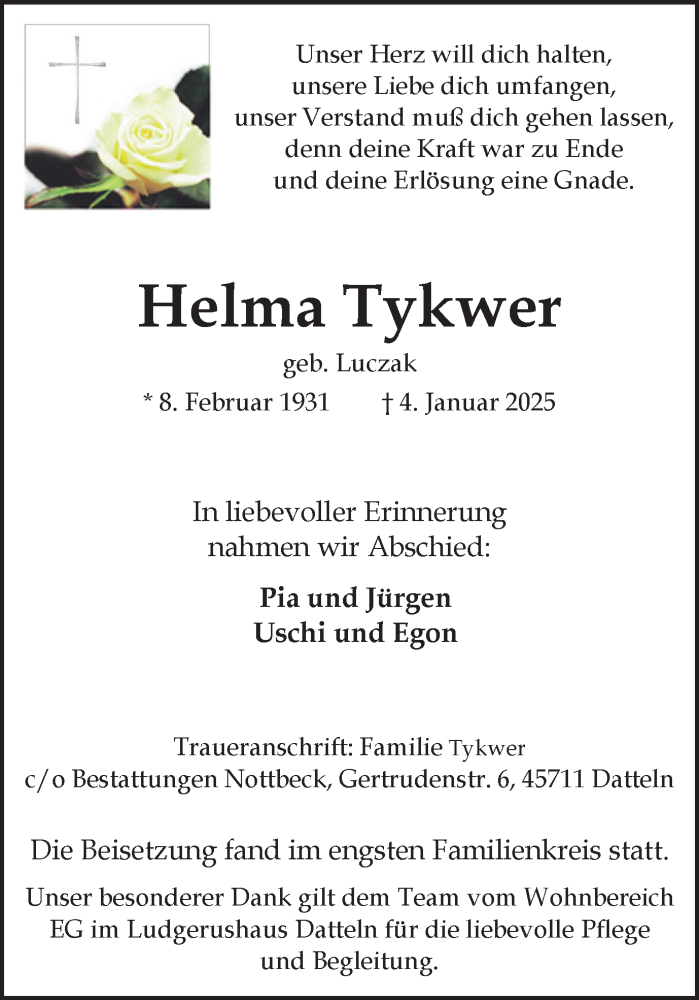 Hier finden Sie alle Traueranzeigen aus der Zeitung, die bisher für Helma Tykwer erschienen sind. Weitere Traueranzeigen, die in der Zeitung erscheinen, werden hier ebenfalls aufgelistet