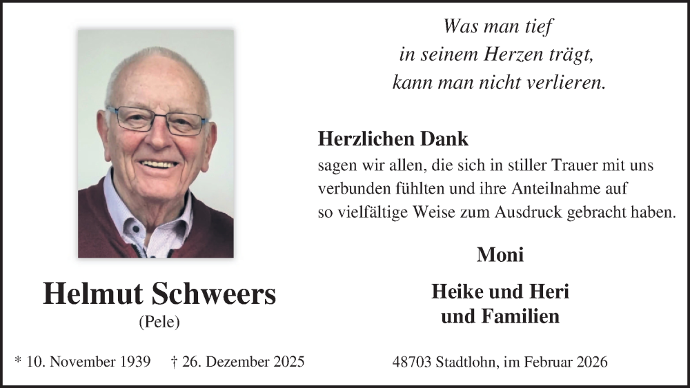 Hier finden Sie alle Traueranzeigen aus der Zeitung, die bisher für Helmut Schweers erschienen sind. Weitere Traueranzeigen, die in der Zeitung erscheinen, werden hier ebenfalls aufgelistet