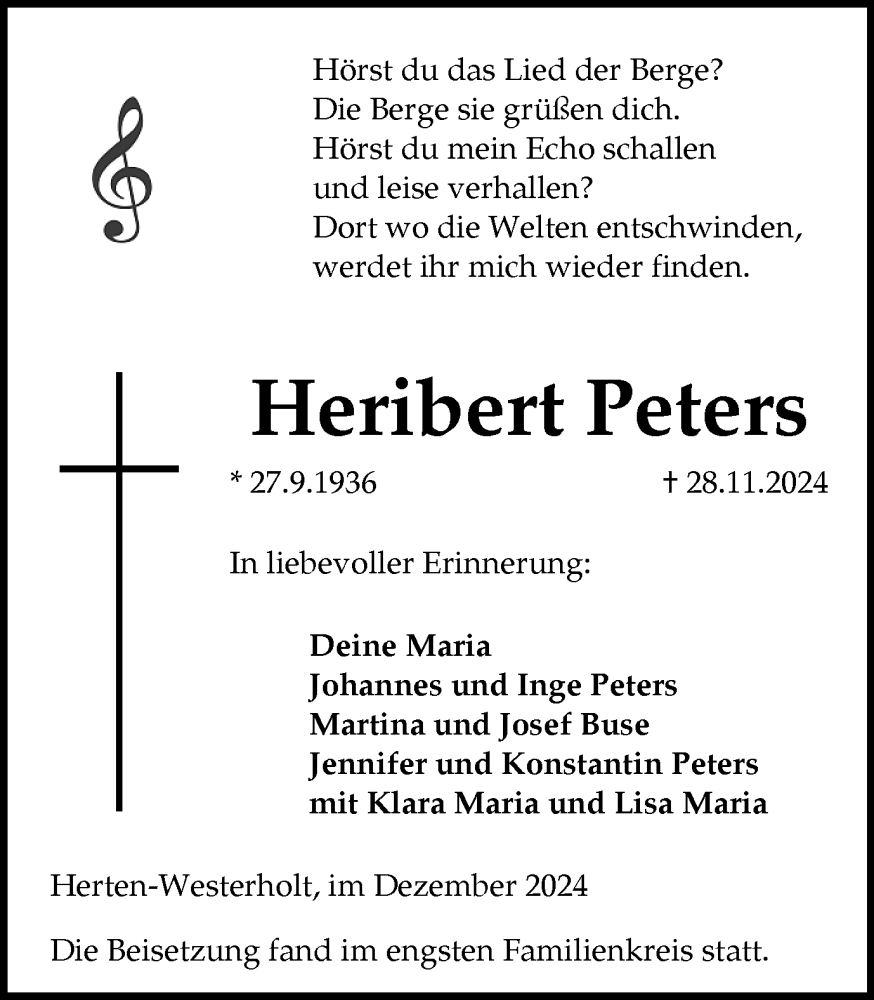 Hier finden Sie alle Traueranzeigen aus der Zeitung, die bisher für Heribert Peters erschienen sind. Weitere Traueranzeigen, die in der Zeitung erscheinen, werden hier ebenfalls aufgelistet