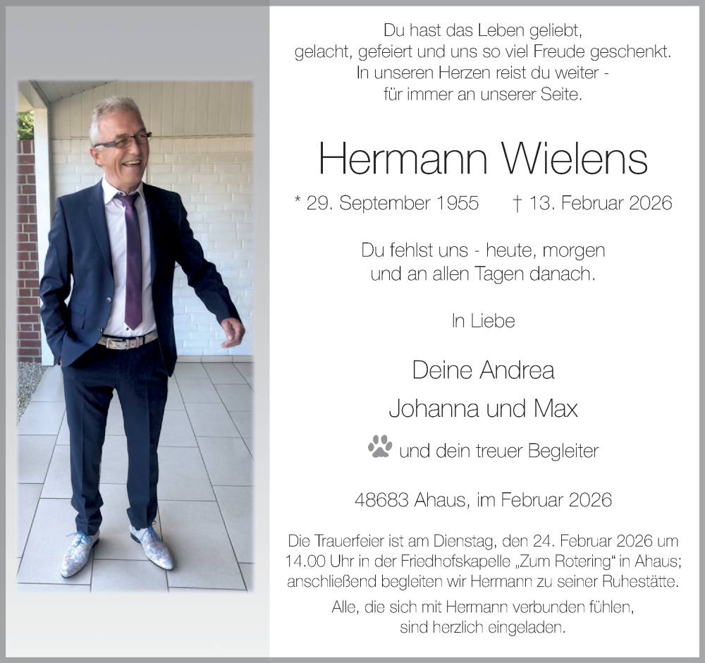 Hier finden Sie alle Traueranzeigen aus der Zeitung, die bisher für Hermann Wielens erschienen sind. Weitere Traueranzeigen, die in der Zeitung erscheinen, werden hier ebenfalls aufgelistet