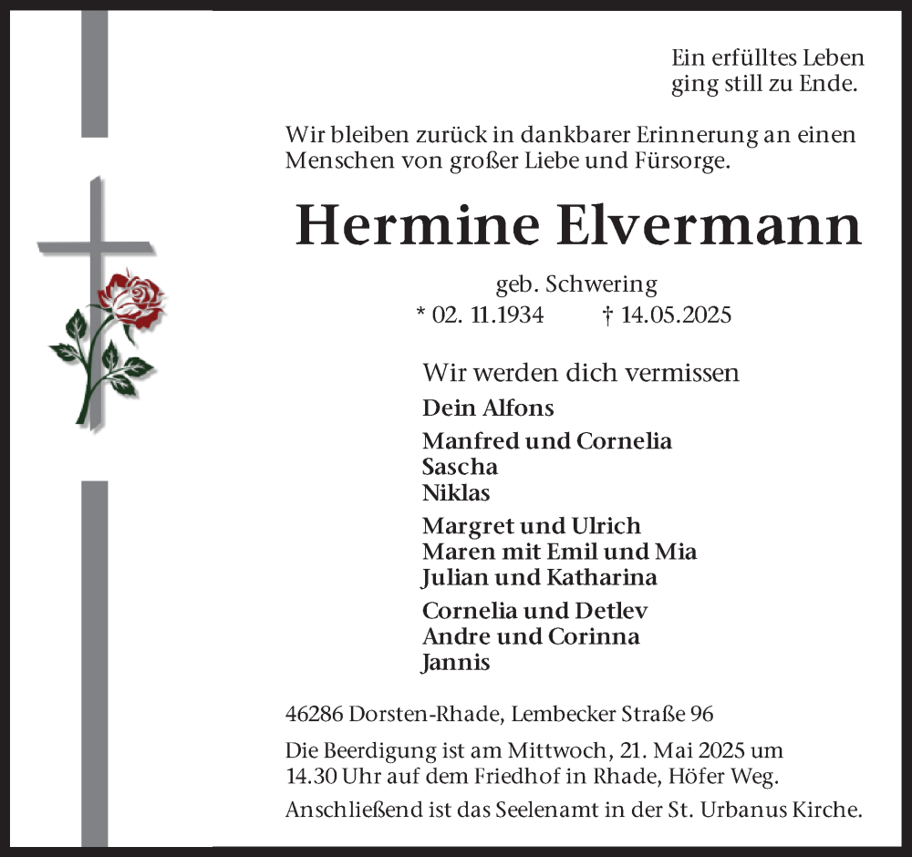 Hier finden Sie alle Traueranzeigen aus der Zeitung, die bisher für Hermine Elvermann erschienen sind. Weitere Traueranzeigen, die in der Zeitung erscheinen, werden hier ebenfalls aufgelistet