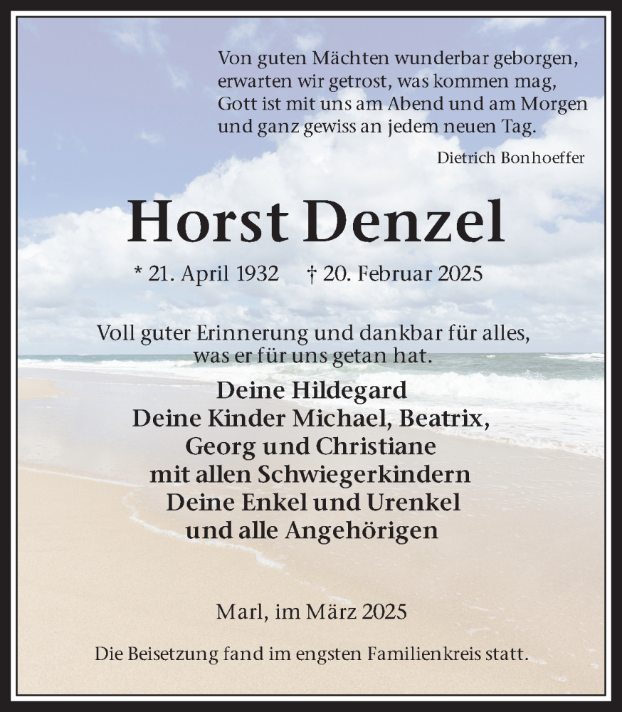 Hier finden Sie alle Traueranzeigen aus der Zeitung, die bisher für Horst Denzel erschienen sind. Weitere Traueranzeigen, die in der Zeitung erscheinen, werden hier ebenfalls aufgelistet