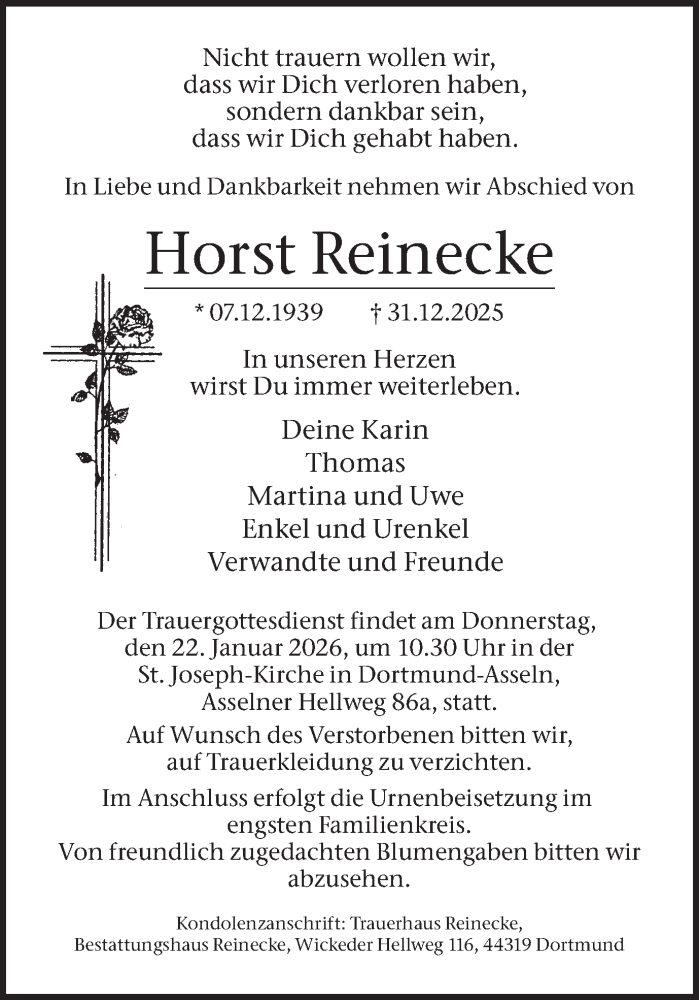 Hier finden Sie alle Traueranzeigen aus der Zeitung, die bisher für Horst Reinecke erschienen sind. Weitere Traueranzeigen, die in der Zeitung erscheinen, werden hier ebenfalls aufgelistet