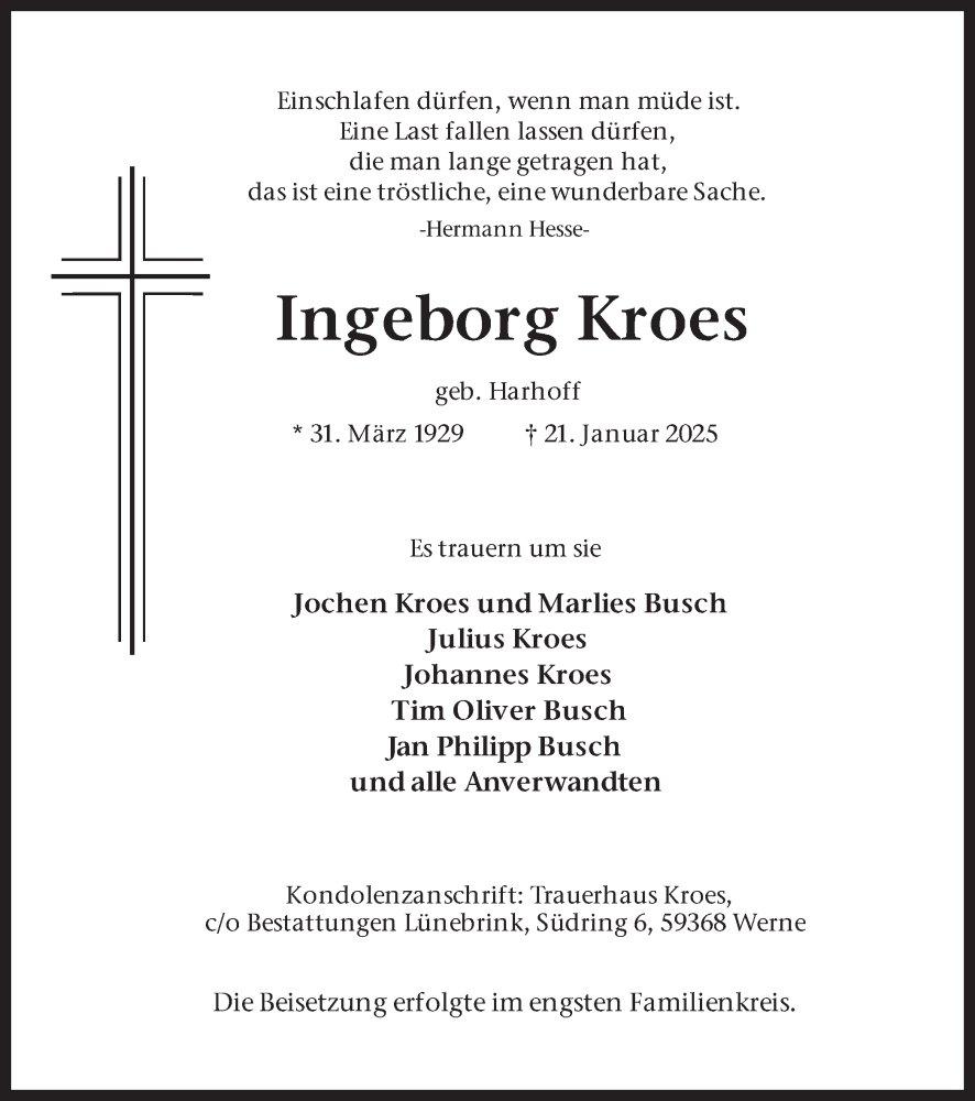 Hier finden Sie alle Traueranzeigen aus der Zeitung, die bisher für Ingeborg Kroes erschienen sind. Weitere Traueranzeigen, die in der Zeitung erscheinen, werden hier ebenfalls aufgelistet