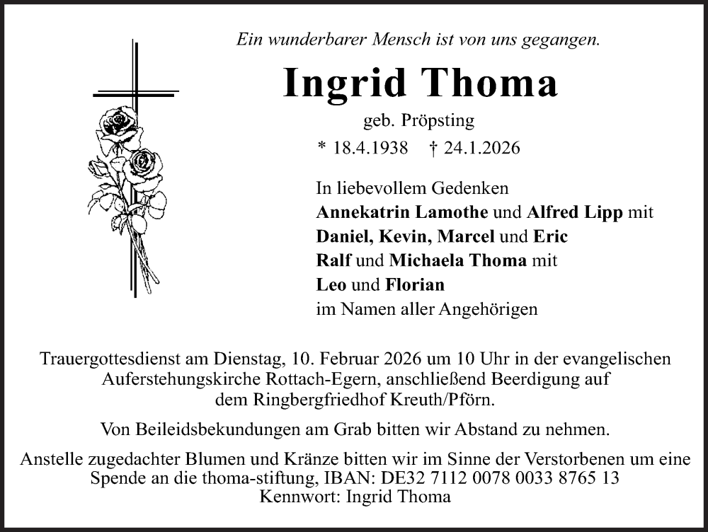 Hier finden Sie alle Traueranzeigen aus der Zeitung, die bisher für Ingrid Thoma erschienen sind. Weitere Traueranzeigen, die in der Zeitung erscheinen, werden hier ebenfalls aufgelistet