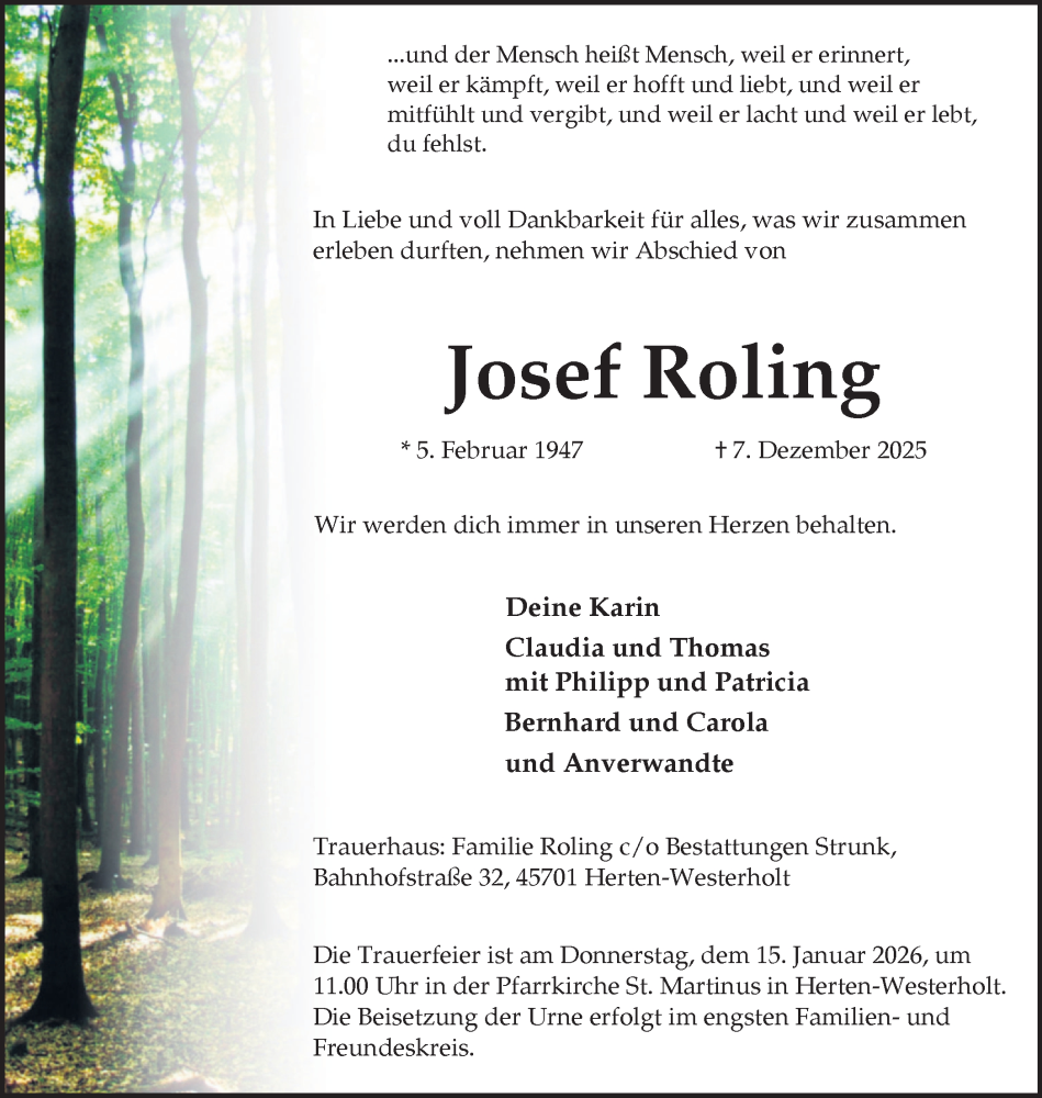 Hier finden Sie alle Traueranzeigen aus der Zeitung, die bisher für Josef Roling erschienen sind. Weitere Traueranzeigen, die in der Zeitung erscheinen, werden hier ebenfalls aufgelistet