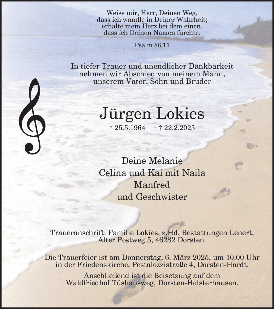 Hier finden Sie alle Traueranzeigen aus der Zeitung, die bisher für Jürgen Lokies erschienen sind. Weitere Traueranzeigen, die in der Zeitung erscheinen, werden hier ebenfalls aufgelistet