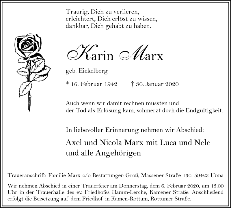 Hier finden Sie alle Traueranzeigen aus der Zeitung, die bisher für Karin Marx erschienen sind. Weitere Traueranzeigen, die in der Zeitung erscheinen, werden hier ebenfalls aufgelistet